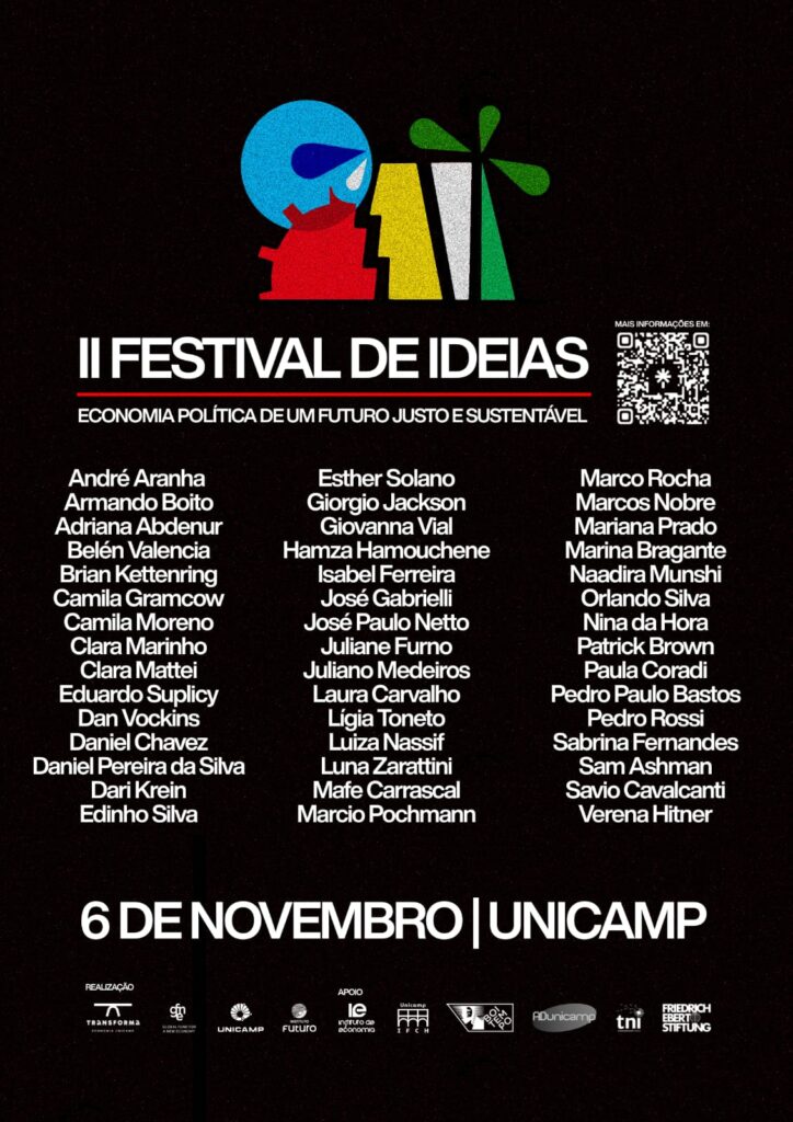 Organizado pelo Projeto Transforma, think tank de economia crítica vinculado ao Instituto de Economia (IE), o Festival de Ideias 2025 será realizado no campus Campinas da Unicamp, reunindo pesquisadores, formuladores de políticas, gestores públicos, estudantes e representantes da sociedade civil para debater os caminhos da Economia Política de um Futuro Justo e Sustentável.